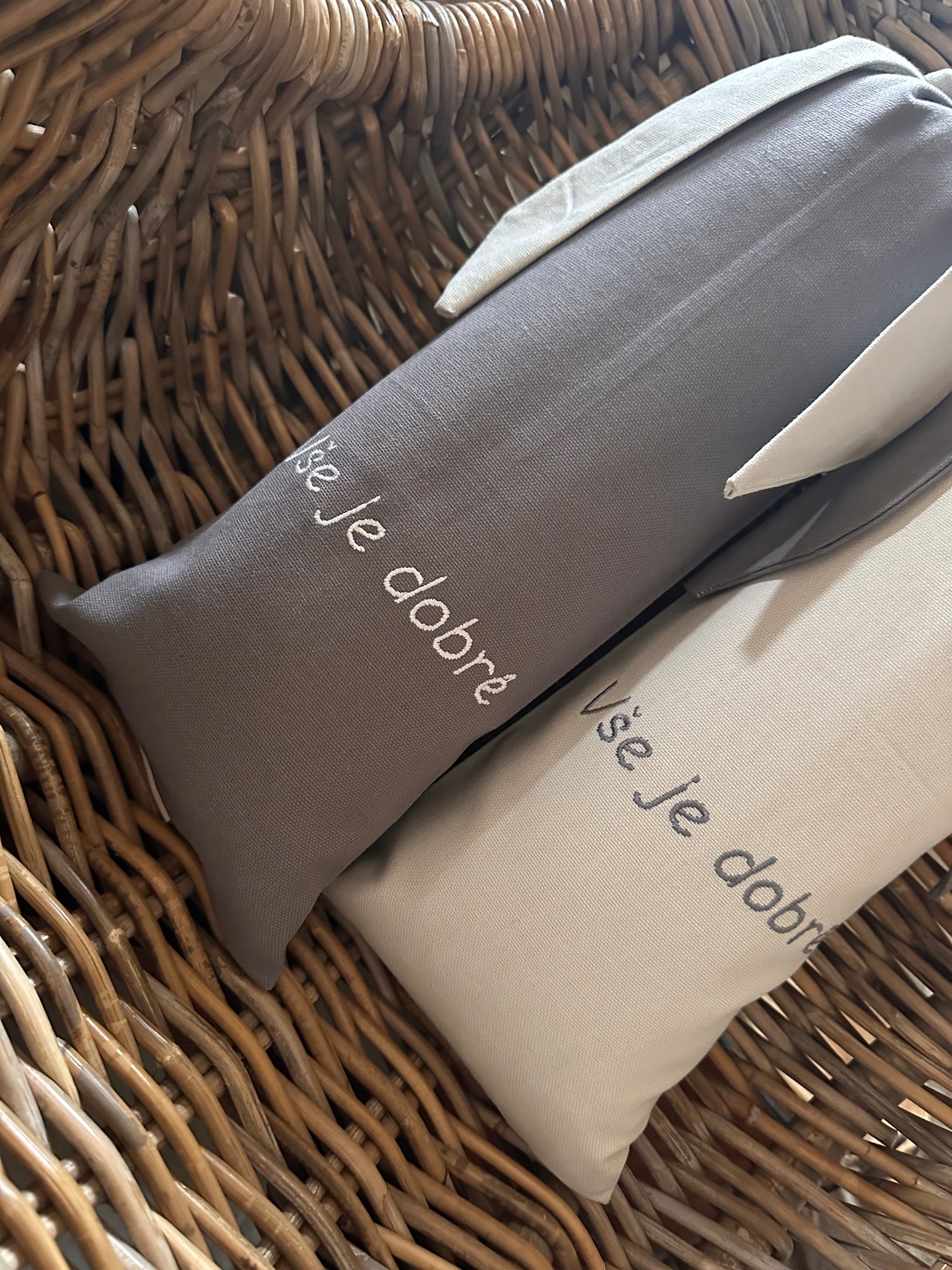 Optimistický vyšívaný nápis Vše je dobré a relaxační levandule z tohoto výrobku dělají ideální dárek pro kohokoliv